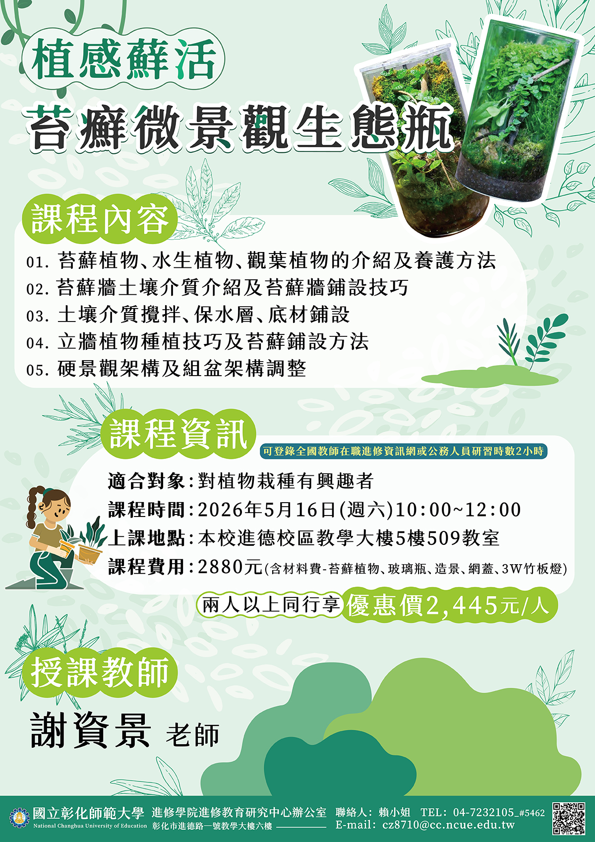 國立彰化師範大學進修學院推廣教育課程「【AI賦能.跨域應用】創意行銷與多媒體視覺創作」、「【植感蘚活】苔蘚微景觀生態瓶」課程簡章